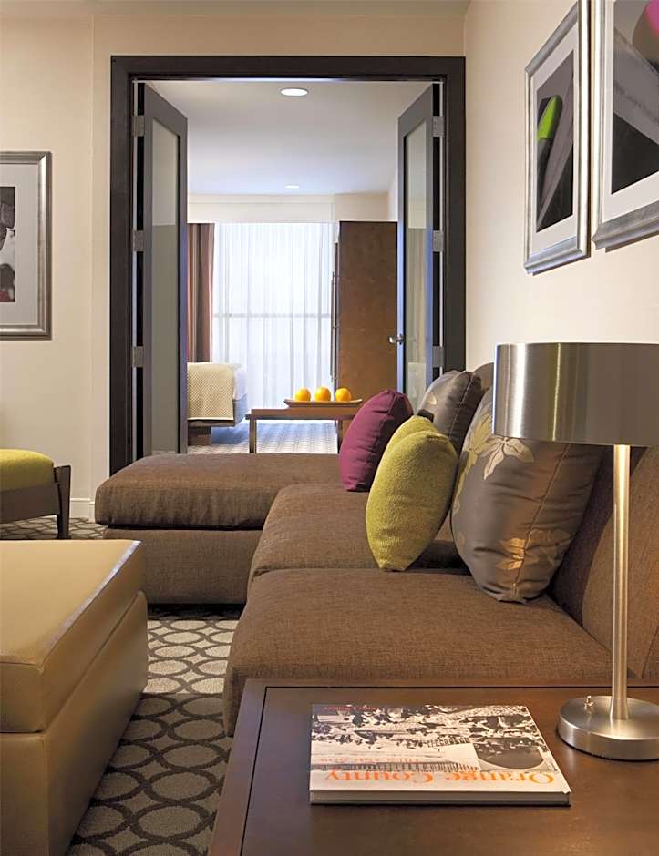 This 2-bedroom, 2-bathroom suite has a seating area, an iPod docking station, a microwave, a refrigerator and a large work desk.